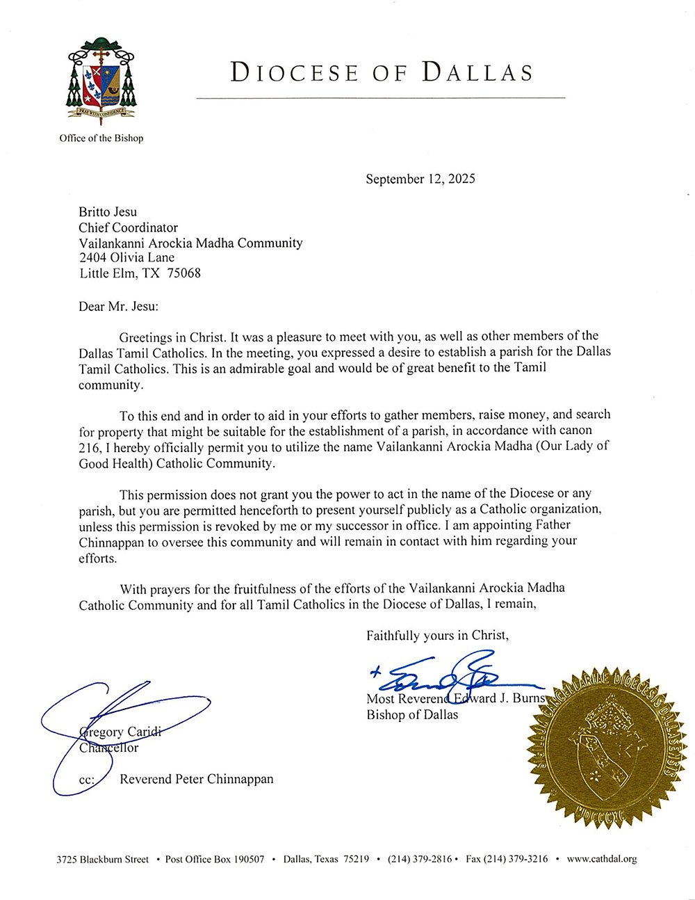 The DTC community proudly honors Fr. Peter’s vision, leadership, and unwavering dedication to the Diocese of Dallas and to Tamil Catholics across North Texas.